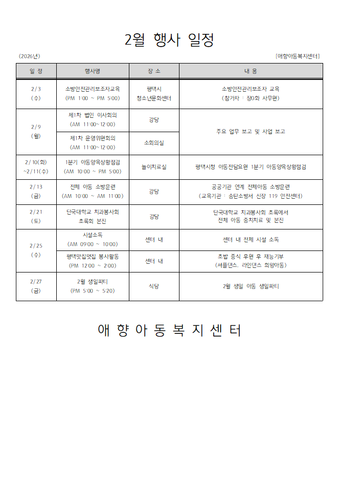 2026년 2월 행사일정