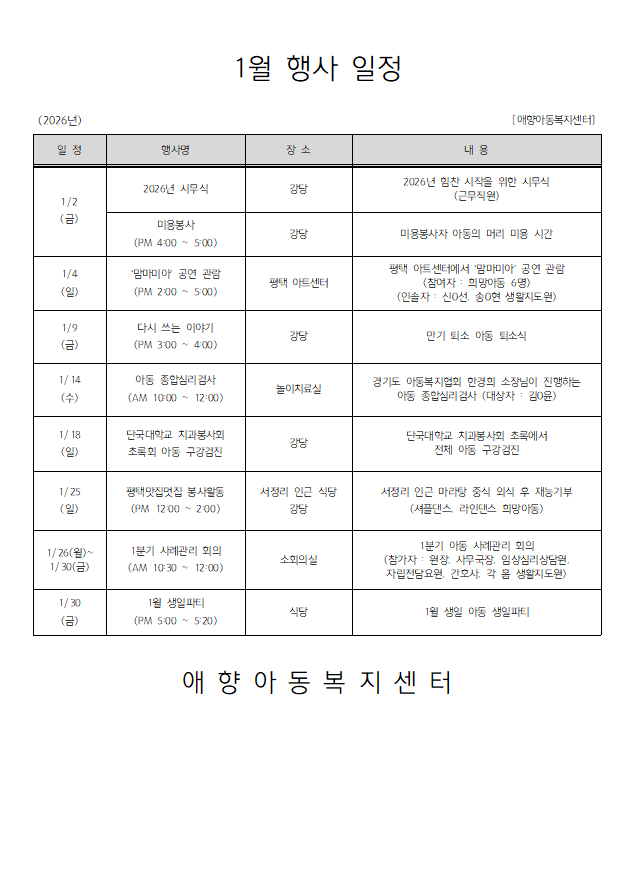 2026년 1월 행사일정