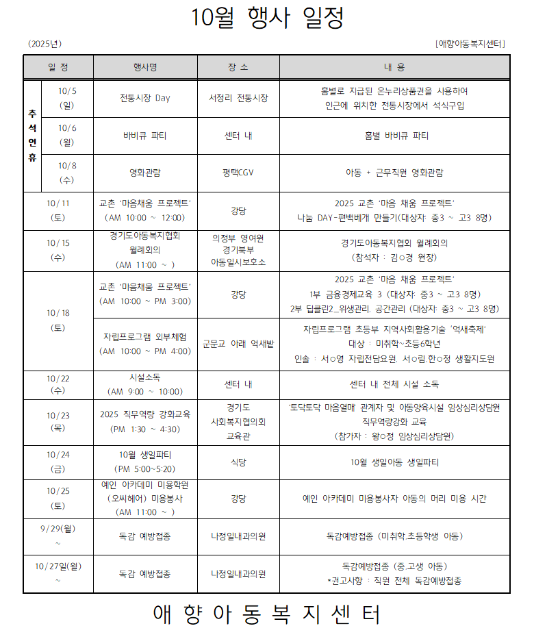 2025년 10월 행사일정입니다. (수정)
